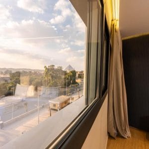 Our Deluxe Double Room offers the pyramids-view and City view experience you’ve been dreaming of—a stylish and serene retreat with breathtaking views of the Pyramids, the Sphinx, and the surrounding desert.